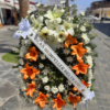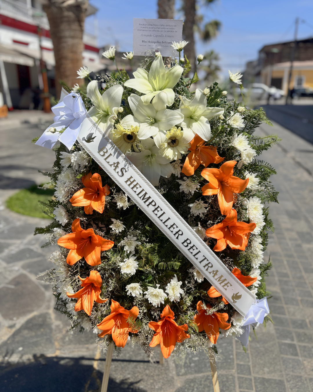Un diseño armonioso que combina la vitalidad de los liliums naranjas con la serenidad de los liliums blancos. Esta composición de gran altura ofrece un equilibrio perfecto entre la gratitud por los momentos vividos y el respeto profundo, creando un ambiente de paz y cercanía para honrar una memoria especial.