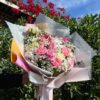 Un bouquet delicado y romántico en tonos rosa y blanco, compuesto por claveles, mini rosas, gypsophilia y gerberas. Perfecto para expresar cariño, dulzura y gratitud con elegancia.